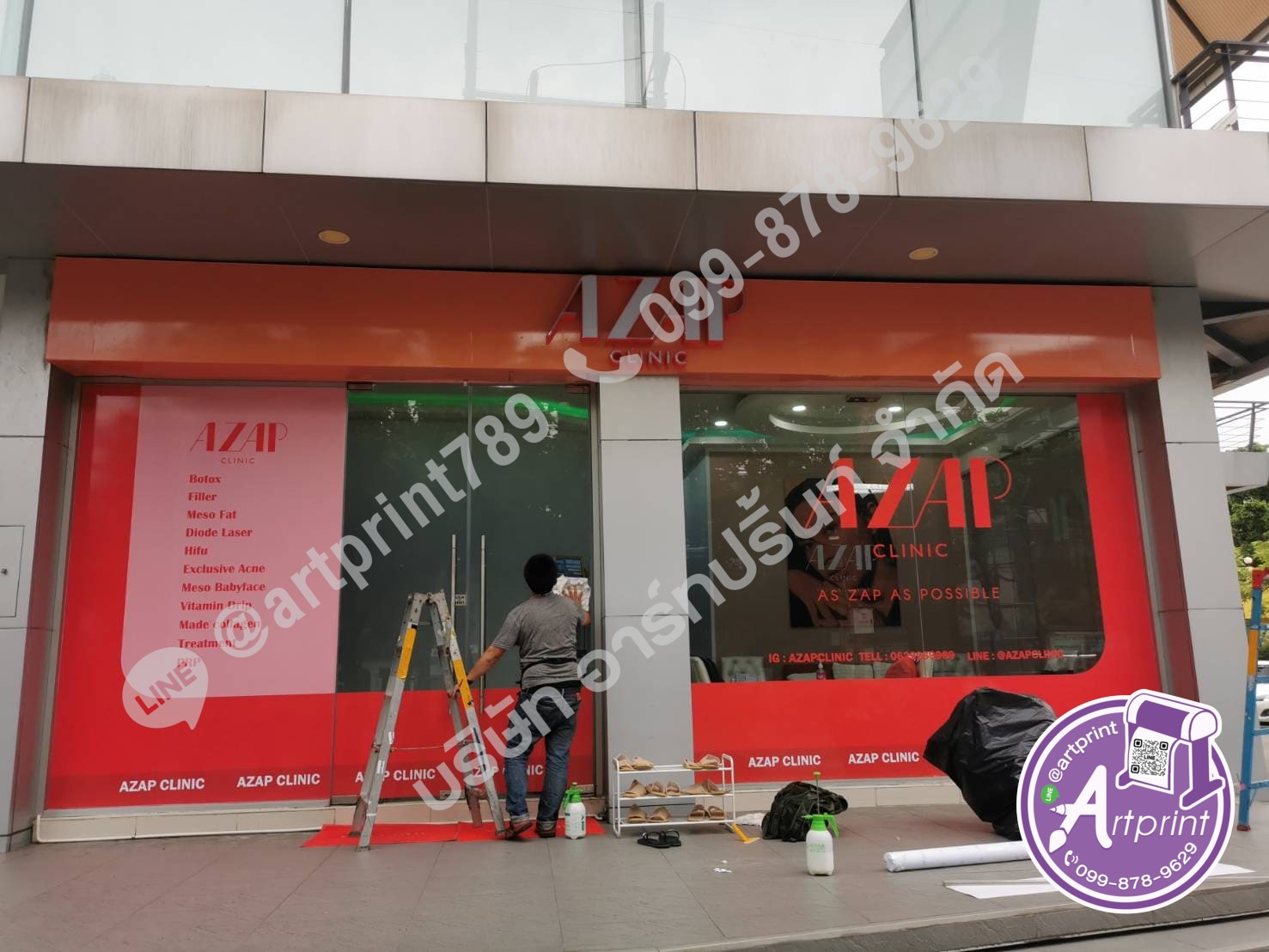 รับติดสติ๊กเกอร์กระจกที่สูง